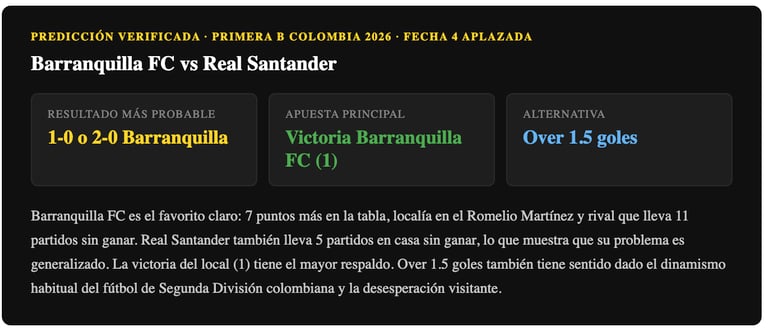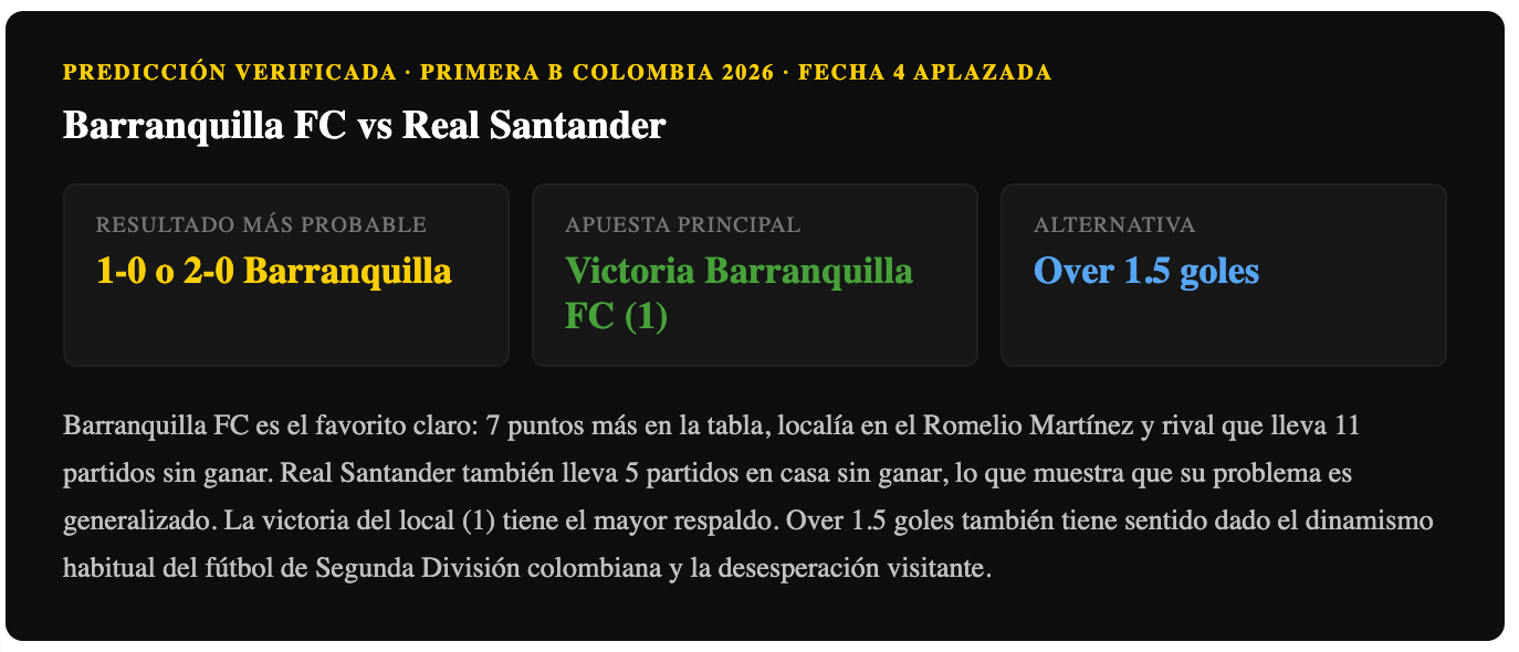 Pronóstico Barranquilla FC vs Real Santander — Fecha 4 Primera B Colombia 2026