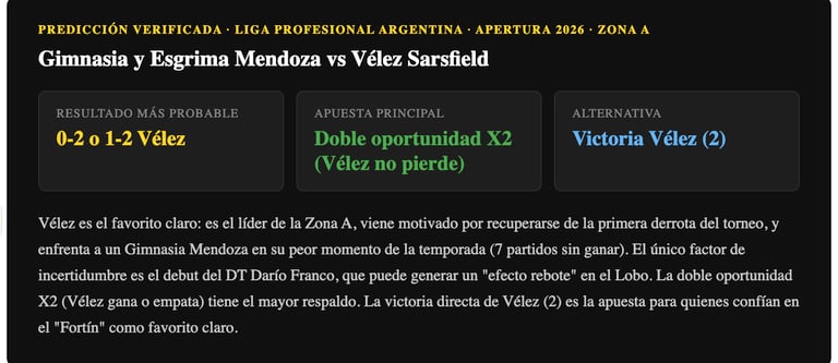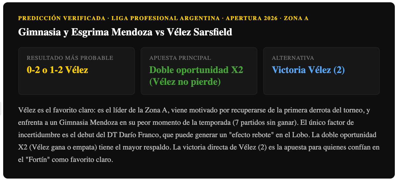 Pronóstico Gimnasia Mendoza vs Vélez Sarsfield — Apertura 2026 Liga Argentina