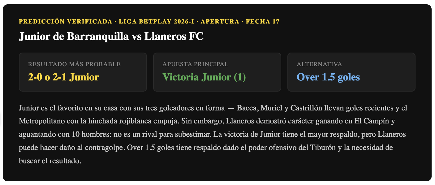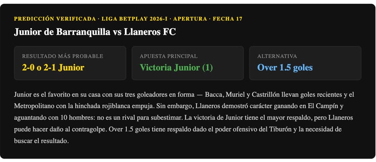 Pronóstico Junior vs Llaneros FC — Liga BetPlay 2026