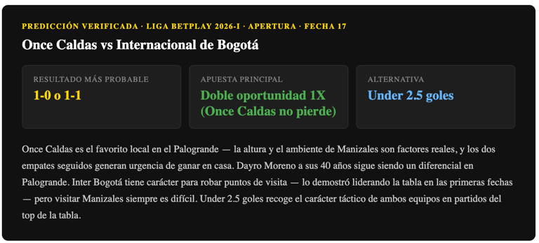 Pronóstico Once Caldas vs Internacional de Bogotá — Liga BetPlay 2026