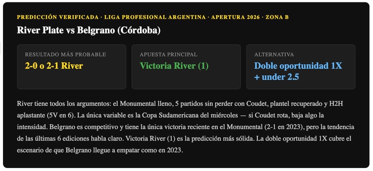 Pronóstico River Plate vs Belgrano — Apertura 2026 Liga Argentina